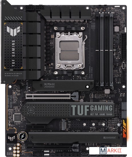 Материнские платы серии TUF Gaming - это высоконадежные устройства, созданные и протестированные для работы в особо сложных условиях Благодаря отборной элементной базе, усиленной системе питания и продуманному охлаждению они обеспечат максимальную стабильность компьютера во время марафонских игровых сессий. Дизайн модели TUF GAMING X670E-PLUS, выполненный в черных тонах с четкими геометрическими формами, отражает строгий лаконизм и функциональную практичность всей серии.Как и все модели серии ASUS TUF GAMING, данная материнская плата предлагает гибкие средства настройки компьютерной системы, чтобы та работала именно так, как нужно пользователю.Функция интеллектуального разгона AI Overclocking оценивает используемый экземпляр процессора и систему охлаждения, чтобы предугадать оптимальные настройки для каждой конкретной компьютерной конфигурации. Полученные значения можно применить автоматически или использовать как основу для дальнейших разгонных экспериментов.Функция Dynamic OC Switcher автоматически активирует оптимальные настройки оверклокинга в зависимости от энергопотребления или температуры процессора, переключаясь между двумя вариантами: ручным разгоном для тяжелых многопоточных нагрузок и разгоном с помощью технологии PBO для однопоточных задач.Функция Core Flex позволяет добиться еще более впечатляющих результатов при разгоне за счет гибкого контроля над электропитанием и температурой. В самом простом варианте процессор будет снижать свою рабочую частоту по мере того, как растет его температура или электропотребление. С другой стороны, пользователю предоставляется множество средств гибкого управления отдельными параметрами, поэтому ничто не мешает с максимальной точностью задать поведение процессора в любой ситуации.В системе питания процессора применяется 16 силовых модулей (по схеме 14+2), каждый из которых рассчитан на силу тока в 70 А и включает в себя драйвер, нижний и верхний MOSFET-ключи. Благодаря такой интеграции компонентов достигается повышенная эффективность их работы.SafeSlot - это особый способ крепления слота PCIe на основе внутренних металлических элементов, которые обеспечивают устойчивость к деформациям при установке и извлечении платы расширения. Аналогичная защита предусмотрена для слотов памяти DIMM.На материнских платах ASUS реализована полноценная защита от потенциально опасных разрядов статического электричества: воздушного электростатического разряда напряжением до +/-10 кВ и контактного разряда до +/-6 кВ. Это значительно превышает требования промышленных стандартов (+/-6 кВ и +/-4 кВ, соответственно).Материнская плата серии TUF GAMING X670E - это полноценная геймерская платформа, насыщенная полезной функциональностью, включающей в себя скоростной сетевой интерфейс для комфортной игры через интернет и высококачественную встроенную аудиосистему со специальным "радаром", который помогает определять положение источников звука в шутерах от первого лица. А чтобы создать по-настоящему геймерскую атмосферу, у нее имеется красочная подсветка, визуальные эффекты которой можно синхронизировать с другими компонентами и периферийными устройствами.